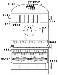 旋膜除氧器由除氧塔和水箱兩大部分組成。給水除氧和加熱主要在除氧塔內(nèi)完成。水箱作儲(chǔ)水、緩沖和深度除氧之用,并兼有鍋爐上水時(shí)預(yù)加熱和保證給水泵安全運(yùn)行的輔助作用。在除氧塔內(nèi)裝有兩級除氧組件,一級除氧組件起膜管是傳熱傳質(zhì)的主要部件,須按設(shè)計(jì)參數(shù)選擇數(shù)量和進(jìn)行工藝結(jié)構(gòu)布置。二級除氧組件是絲網(wǎng)波紋填料。在除氧水箱內(nèi)裝有蒸汽導(dǎo)管、配水管、再沸騰管、防旋裝置與接管。在除氧塔和水箱上還裝有計(jì)量、顯示儀表。
